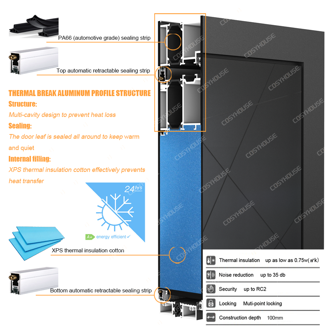 China Top Supplier Custom Luxury Pivot Security Exterior Doors Modern Aluminum Metal Front Entry Door for House
