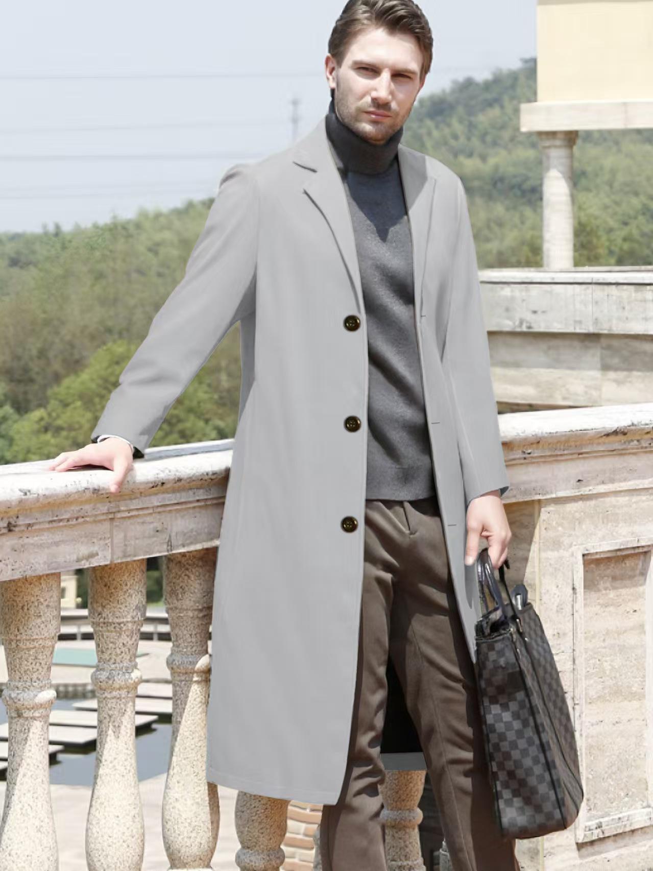 Fashion Formal Men's Stylish Casual Long Windbreaker Clothes Coat Winter Plus Size with Button