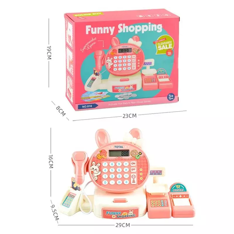JJT816 Cute Rabbit Cash Registers Pretend Play Set Supermarket Checkout Counter Toys for Children