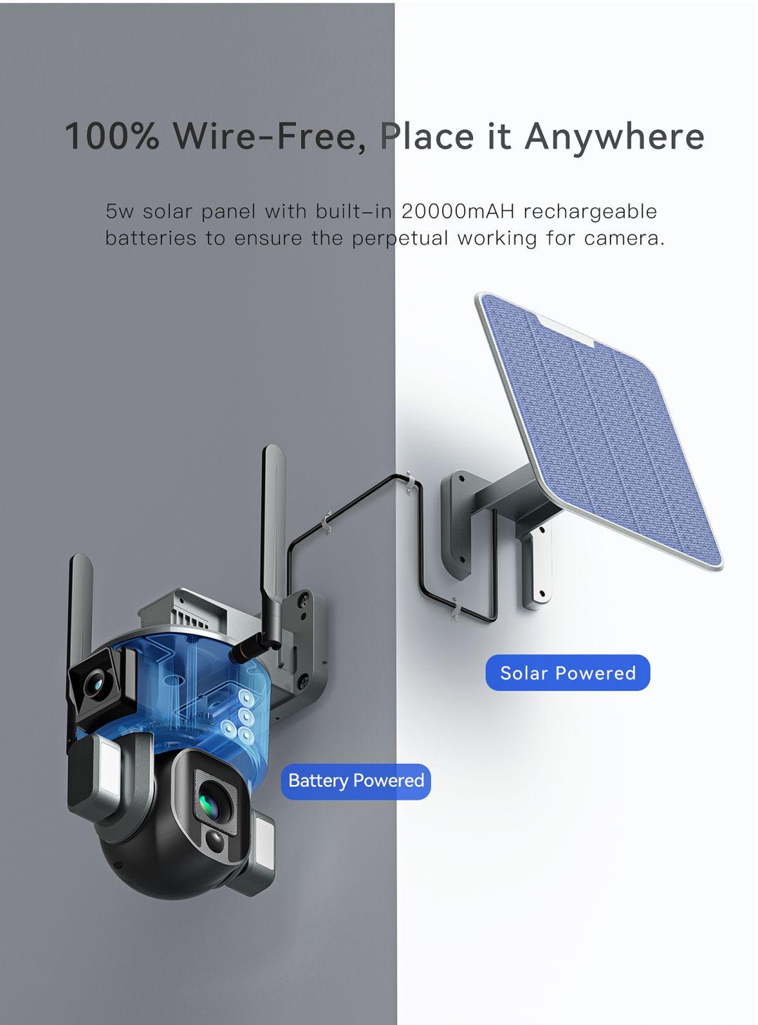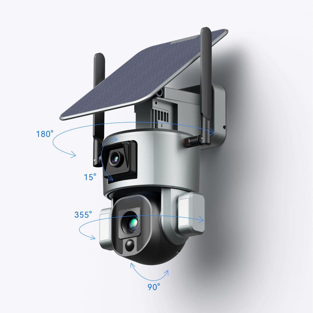 Sim Card 4K 10XZoom Surveillance Solar Powered Outdoor Security Camera Alarm Linkage Dual Lens CCTV 4G Solar PTZ Camera