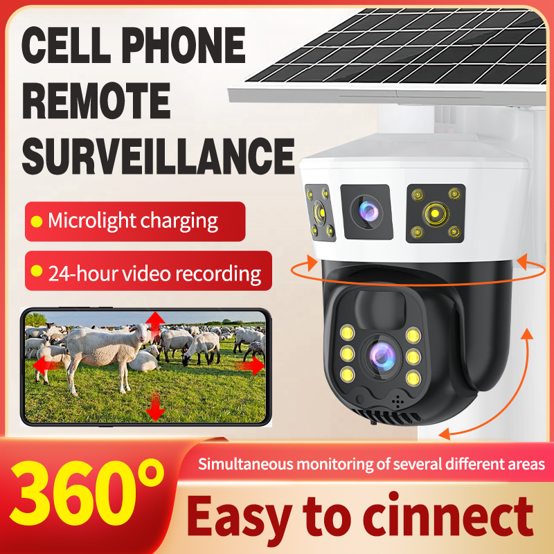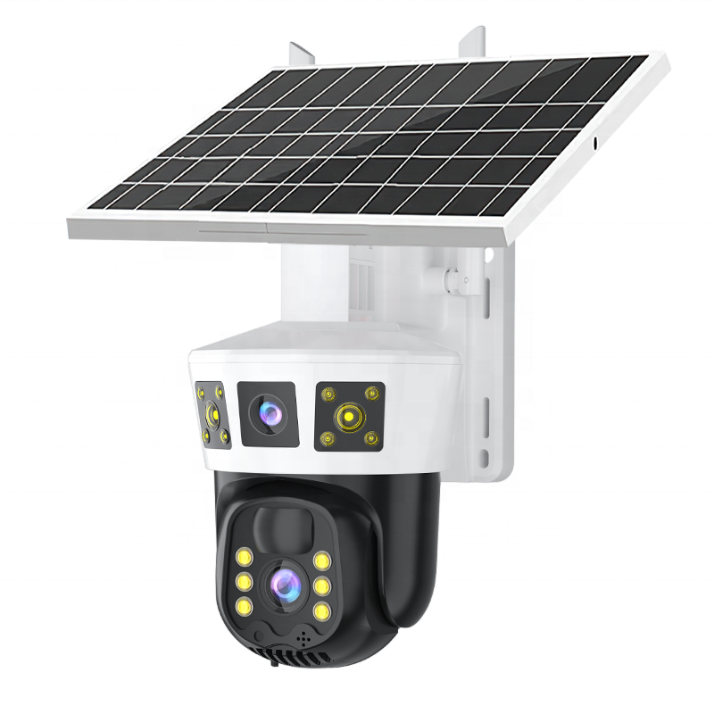Sim Card Solar Panel Dual Camera Lens 3 Screens Outdoor 4K 4G Network Wireless IP Home Security 4g PTZ CCTV Camera