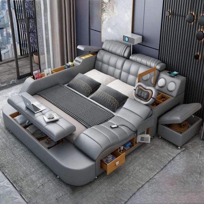 Smart Modern Leather Tatami Bedroom Storage Multi-Functional King Size Up-Holstered Bed Set Royal Style Sex Bedroom Massage Bed